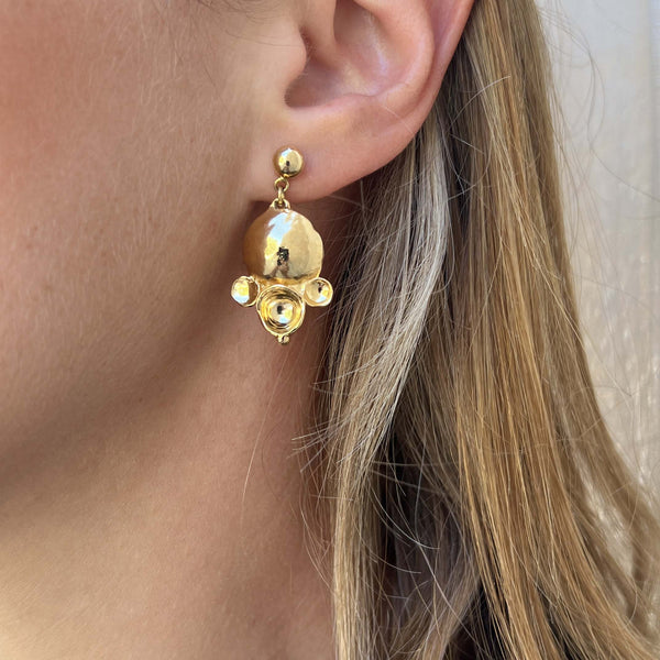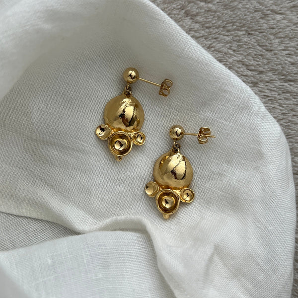 Gli orecchini Bollicine sono piccoli, graziosi e adatti ad ogni tipo di occasione. La composizione di forme concave e convesse crea un vivace gioco di luci e ombre. La collezione Noemi di CACAO Jewels è realizzata con forme morbide e accoglienti, che ricordano le nuvole del cielo e le bolle di sapone.